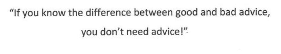 But there is one BIG truth.. THIS IS THE ADVICE I DONT NEED IT!